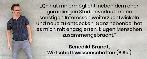 Sehen Sie hier ein Interview mit einem Q+Studierenden, der eine eigene Veranstaltung entwickelt hat.